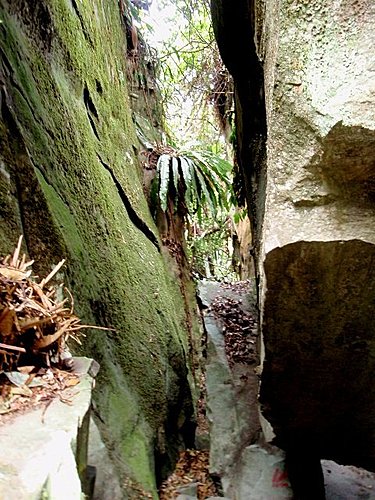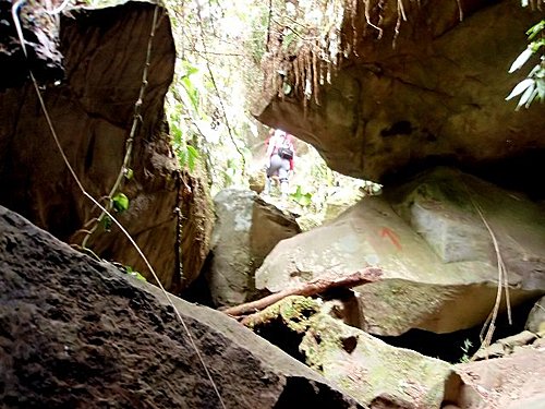 百洞的步道相當原始,需要鑽走、攀爬於巨石叢林之間,早期如非當地導遊帶路,一般遊客是相當容易迷路的,在莫拉克八八風災之前,百洞的步道已開發得較為完整,只要遵循箭頭方向的指引,就不再會有迷路之虞。百洞隔著阿里山溪相對的就是著名的「斯比斯比大峭壁」(鐵達尼),而在其後則是顯得異常尖銳的小塔山。